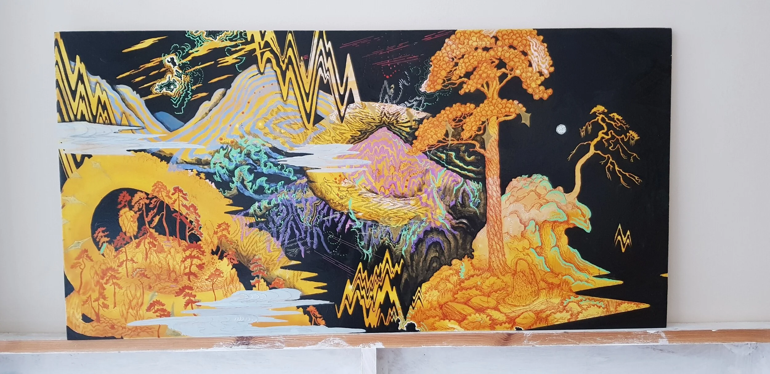 I had time to make art there and made small studies from the many photographs I had taken on the reserve. My thoughts were often somewhere between the mossy boulders, heavy oak trunks and the edge of Loch Arienas. Meanwhile, my feet stood on the seventeenth story of an apartment block looking down onto a rising concrete metropolis; its concrete foundations continuously growing out of a patchwork of sprawling old Chinese farmland.